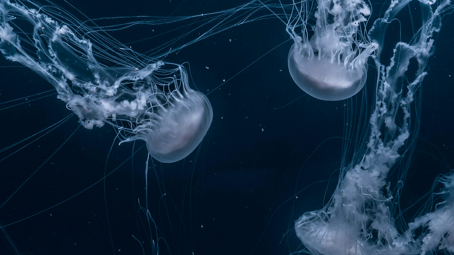 white jellyfish, jellyfish, sea jelly, medusa, ocean, sea, water, marine life, underwater, aquatic, swim, swimming, floating, bioluminescent, transparent