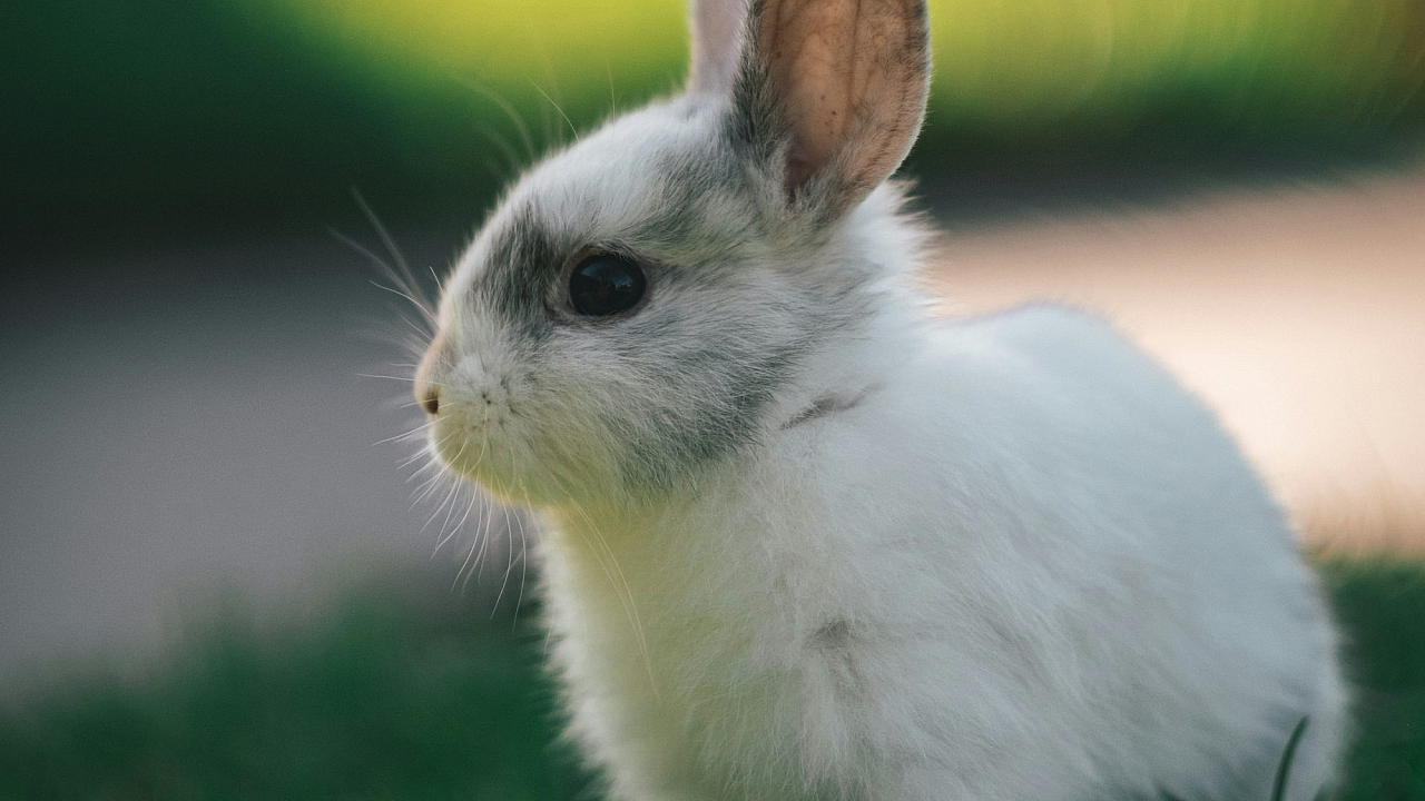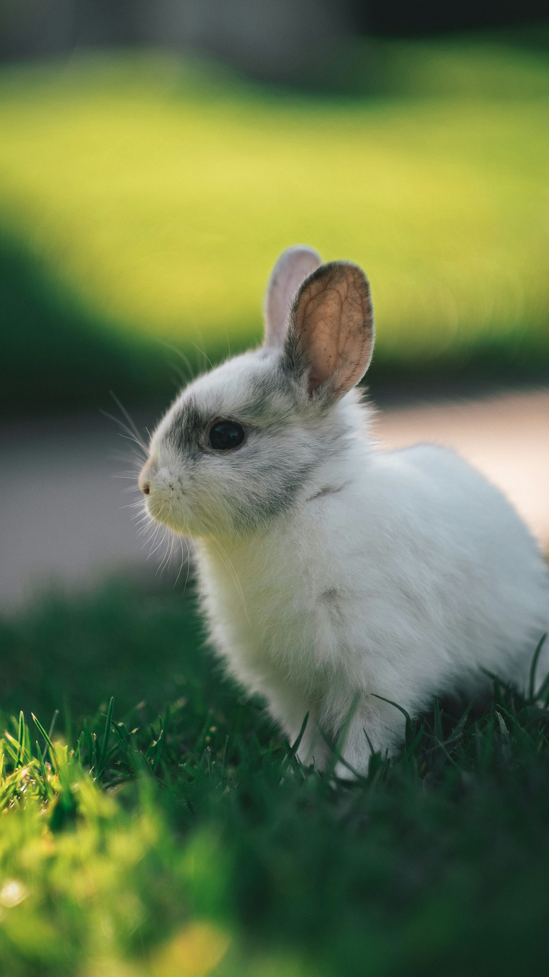 white rabbit, green grass, daytime, meadow, field, bunny, hare, lawn, spring, summer, outdoor, nature, animal, wildlife, pastoral